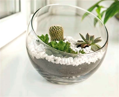 A terrarium is a transparent globe or other container in which plants are grown. They are most useful for small plants that do not adapt well to the normal home atmosphere. They can provide a novel way to grow and care for many plants, indoors, with minimal care.